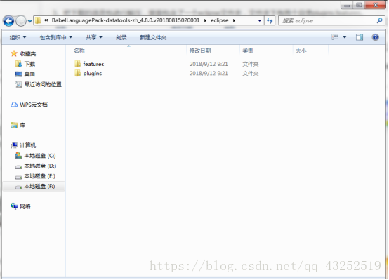 1.把下載下來的語言包進(jìn)行解壓,可以看到里面包含了一個(gè)eclipse文件夾,文件夾下有兩個(gè)目錄plugins,features。