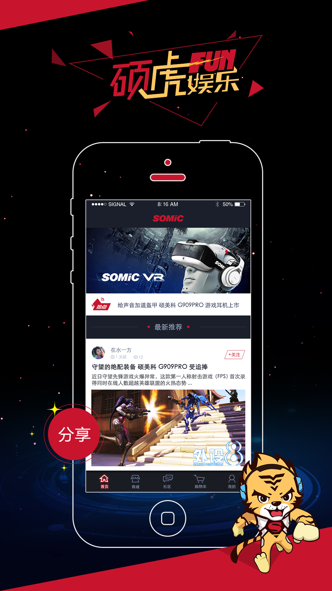 用戶可以在碩虎娛樂中分享游戲心得以及輕松方便的購物。