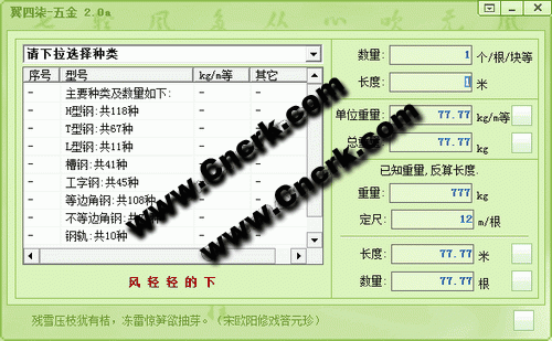 --花紋鋼板單位重量為kg/平方米,在計算時將長度數(shù)據(jù)輸入為<平方米計算>