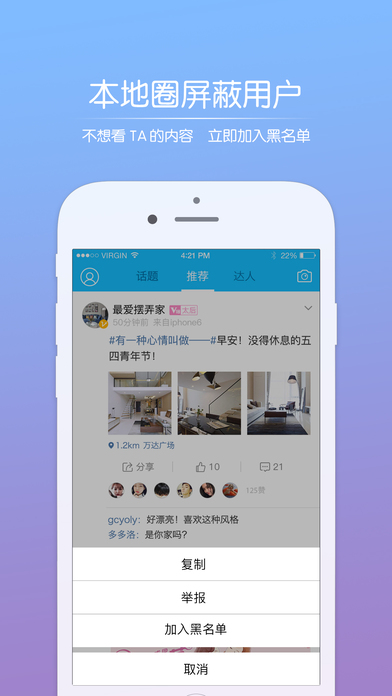 4.【完善】本地圈添加屏蔽功能,討厭的人通通不看