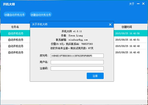 定時開機大師是一款功能強大的電腦定時開關(guān)機軟件,該軟件操作簡單,無須設(shè)置BIOS等,通過它您可以一鍵創(chuàng)建每天/每星期/每月的開機、關(guān)機等多種任務(wù),并且可以指定開機后執(zhí)行的程序,十分方便。