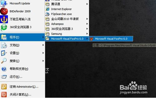 從開始菜單->程序里找到Visual FoxPro 6.0,如下圖