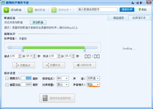 7、支持在線搜索鈴聲,共享酷狗p2p資源10.雙聲道、單聲道選擇工作窗口