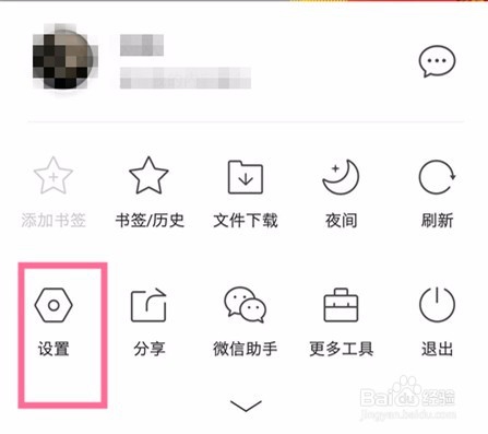 點擊打開QQ瀏覽器,在瀏覽器首頁點擊下方主菜單欄圖標,然后就會彈出菜單欄頁面,在此頁面里我們點擊【設置】