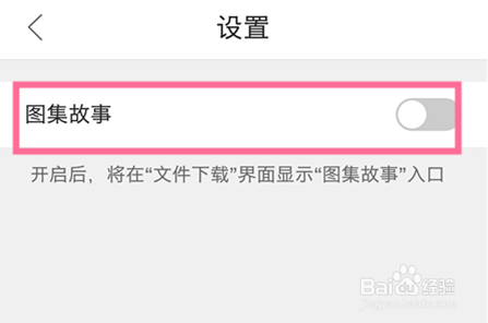此時會彈出擴展功能頁面,在擴展功能頁面里點擊【圖集故事】,此時會彈出圖集故事開關按鈕,將此按鈕點亮