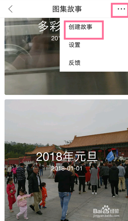 在下載文件頁面,我們點擊【圖集故事】此時就會彈出圖集故事頁面,我們點擊右上方菜單圖標,此時會彈出一個頁面,我們點擊【創(chuàng)建故事】