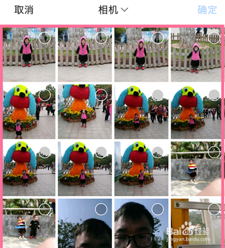 此時會彈出相機頁面,在這個頁面里選擇我們要做成圖集故事的照片,然后點擊右上角的