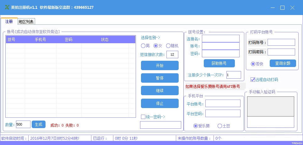 美拍注冊機是一款專為美拍視頻社區(qū)的用戶們所準備的賬號注冊工具。該工具不僅小巧綠色,還可以為用戶提供美拍賬號注冊的功能,并且一鍵注冊多個賬號。