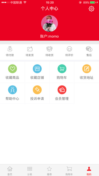 5、我的模塊:顯示用戶的基礎(chǔ)信息、個(gè)人設(shè)置、訂單狀態(tài)等。