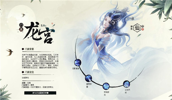 “風(fēng)振畫中琴,雨驚龍潮岸?!?br />昔日水神共工在與火神祝融的一場驚世大戰(zhàn)中死去后,大地上涌起無窮無盡的洪水,人族飽受水患困然。龍族用寶物協(xié)助人族將洪水引導(dǎo)至海洋。玉帝念其功勞,委任龍族為四海之主,永鎮(zhèn)人界四海。但商周之戰(zhàn),北海龍王敖順入魔叛亂,西海龍王敖閏戰(zhàn)死,東海龍王不知所蹤,南海龍王重傷沉睡南海海眼,北海龍王遁走,龍族實力十不存一。事后,東海太子摩昂繼承龍王之位,重建龍族恢復(fù)昔日榮光。