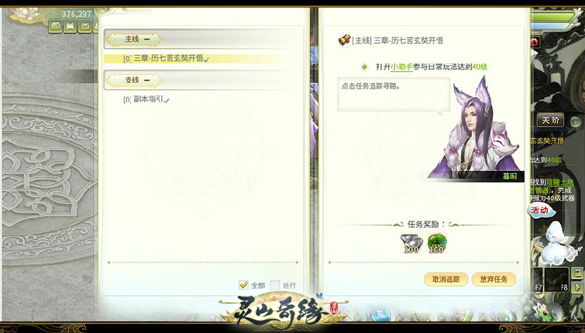 從玩家進入游戲的開始,首先接觸的任務(wù)就是主線任務(wù)。玩家10級到達長安城,從李凝陽處領(lǐng)取主線任務(wù)。
