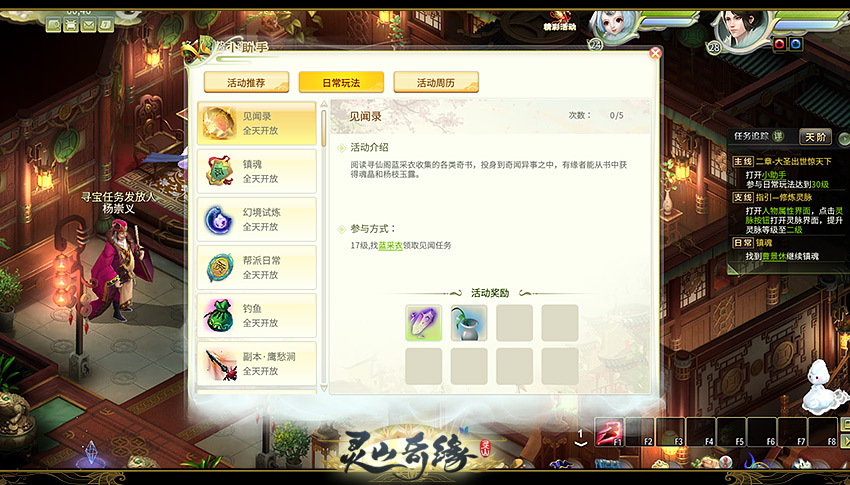 ≥17級玩家就可以開啟日常任務(wù)。