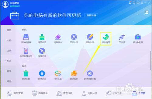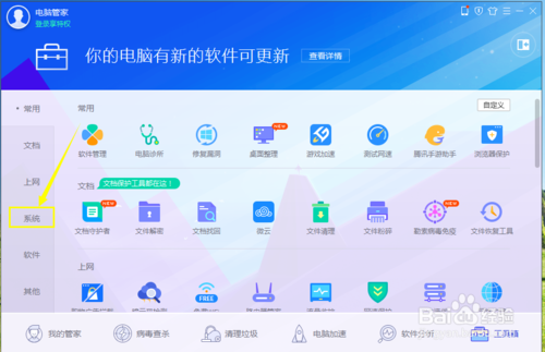 打開管家工具箱,在【系統(tǒng)】分類下,找到系統(tǒng)急救箱。