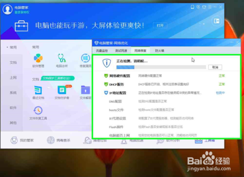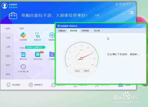 在"電腦管家-網(wǎng)絡(luò)優(yōu)化 (窗格)"上,正在測試下載速度,請稍后......(在"電腦管家-網(wǎng)絡(luò)優(yōu)化"中)。