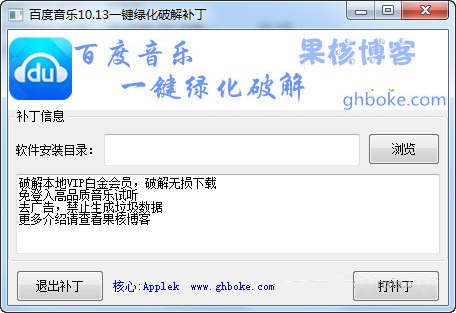 百度音樂一鍵綠化破解補丁是一款針對百度音樂最新版打造的一鍵破解VIP綠化補丁。本補丁能夠輕松破解百度音樂的VIP權(quán)限,此外還支持去廣告、去多余菜單等實用的修改內(nèi)容。