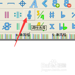 更改調(diào)性方法。如何改調(diào)號(hào)呢?單擊下圖所示的調(diào)性按鈕,選擇一個(gè)調(diào)性,單擊確定。光標(biāo)移到默認(rèn)的調(diào)號(hào)處,單擊一下,就改變調(diào)性了。當(dāng)然嘍《小毛驢》是C調(diào)無(wú)須改變。