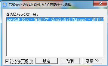 第一步當(dāng)然是先雙擊打開桌面上的圖標(biāo)了,需要注意的是,天正給排水是依托在CAD平臺(tái)上的,所以一定要先下載好相應(yīng)的CAD平臺(tái),如何選擇相應(yīng)的平臺(tái)小編在上文已經(jīng)詳細(xì)說明了,請(qǐng)仔細(xì)閱讀,這里小編已經(jīng)下載好CAD平臺(tái)了,我們按確定就可以了