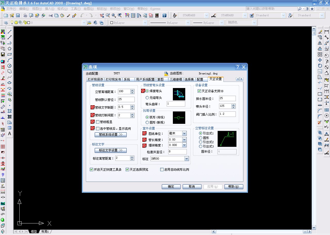 點(diǎn)擊繪制管線上方的管線設(shè)置按鈕。