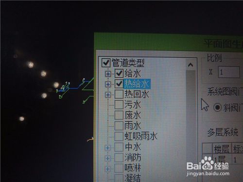 點(diǎn)擊圖框下方的“生成單層系統(tǒng)圖”,他會(huì)讓你選擇平面圖中的管線。