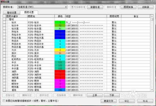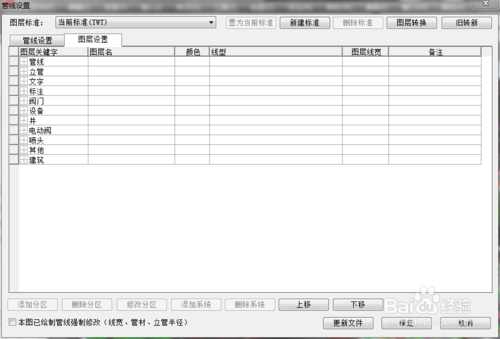 選擇圖層設(shè)置——管線——線型,點(diǎn)擊下拉菜單,選到自己創(chuàng)建的管線,點(diǎn)擊右下角更新文件——確定——繪制管線