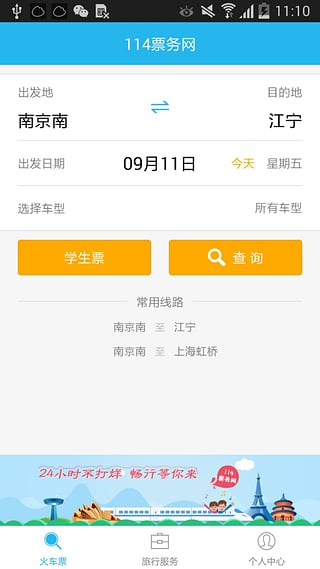 114票務(wù)網(wǎng)是國內(nèi)領(lǐng)先的網(wǎng)上火車票代購服務(wù)專業(yè)平臺(tái)。集成了全國火車票代購服務(wù),景點(diǎn)門票預(yù)訂,旅游度假等旅游及商旅服務(wù)。覆蓋全國所有城市火車票在線代購業(yè)務(wù)以及快遞送票業(yè)務(wù)。提供2500余家景點(diǎn)門票預(yù)訂業(yè)務(wù),3000多條旅游線路查詢以及預(yù)訂服務(wù)。從真正意義上打破了傳統(tǒng)旅游出行的局限性,為廣大客戶群提供更便利、快捷和優(yōu)質(zhì)的旅行服務(wù)。