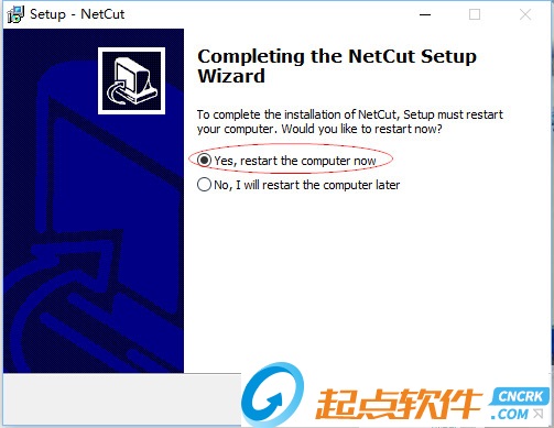 1、下載軟件壓縮包文件,點(diǎn)擊“netcut.exe”,根據(jù)提示安裝即可,注意最后一步,軟件會提示計算機(jī)重啟,如下圖所示: