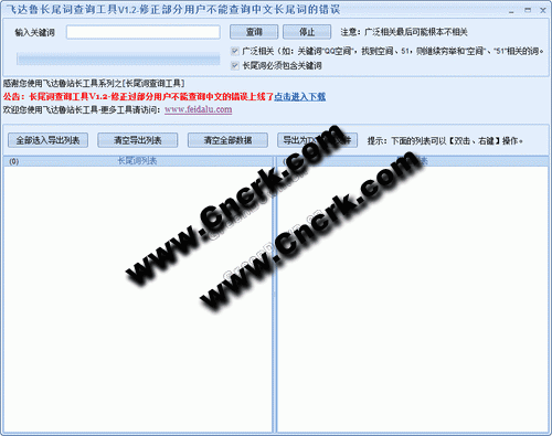 飛達魯長尾詞查詢工具是一款針對網絡編輯和站長的關鍵字查詢的專業(yè)工具,方便網站從業(yè)者或者是SEO專業(yè)人員快速找到適合自己的關鍵字,拉升排名,推動流量!