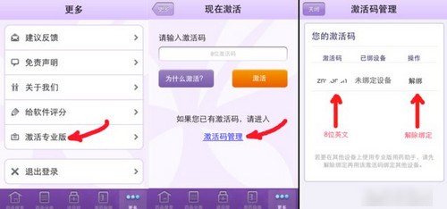 用您的丁香園ID進(jìn)入軟件,打開更多/激活專業(yè)版,在頁面中點擊激活碼管理,可在線查看您當(dāng)前賬號關(guān)聯(lián)的激活碼。