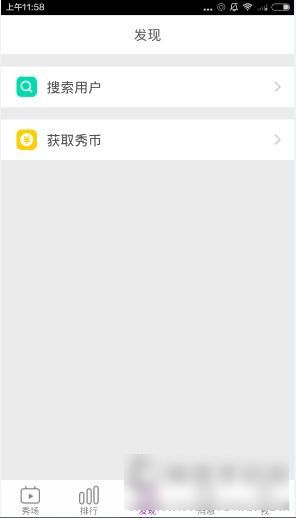 3、在發(fā)現(xiàn)界面,在這里可以搜索用戶(hù),獲取秀幣的喲~