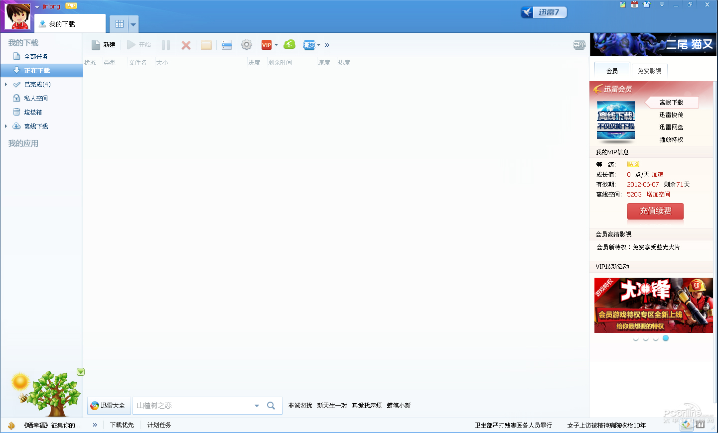 迅雷賬號(hào)信息面板在迅雷處于窗口化模式且左側(cè)空間足夠時(shí),向左側(cè)展開(kāi),不再遮擋任務(wù)分類區(qū)域
