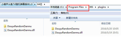 如果為64位,請將下載下來的小葫蘆斗魚TV隨機(jī)彈幕插件.zip解壓將64位文件夾里的ZhanqiRandomDanmu.dll文件和ZhanqiRandomDanmu文件夾復(fù)制到Program Files的OBS的安裝目錄的plugins文件夾下。