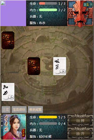 2.當(dāng)然,隨著游戲的深入,對手會變得越來越強(qiáng)!你必須好好思考用牌策略,了解你的門派和對手的絕技是關(guān)鍵,知己知彼,百戰(zhàn)不殆!