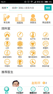 患者可以通過常見病、找醫(yī)院、找醫(yī)生、找科室、自診方式選擇適合的醫(yī)生或者醫(yī)院繼續(xù)約定就診。