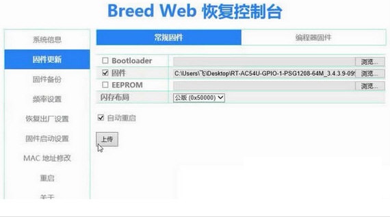 5、恢復固件方法:固件更新->選中右側(cè)固件->瀏覽找到固件點擊上傳即可。