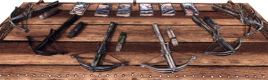 每個(gè)弩具有匹配的一組弩矢和爆炸效果?