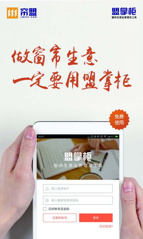 盟掌柜,由簾盟科技自主研發(fā),擁有多項發(fā)明專利的一款為窗簾行業(yè)量身定制的窗簾生意運營增效管理軟件工具,可為窗簾店鋪提供消費者到店快速模擬真實3D場景,通過窗簾在線選型功能,實現上萬種商品“實體+虛擬”選型體驗,提升店鋪到店成交率。為窗簾店鋪提供訂單管理、快速找貨、省錢進貨等增值服務。同時,更為窗簾生產企業(yè)定制專業(yè)的在線供應鏈管理、訂單管理、庫存管理、賬務管理、人力資源、加盟店鋪管理等一系列功能的管理工具。通過云智能分析系統(tǒng),幫助行業(yè)參與者清晰直觀了解店鋪、企業(yè)運營情況,輕松降低運營成本,大幅提高經營利潤,做到移動掌控生意全局。【更新日志】
