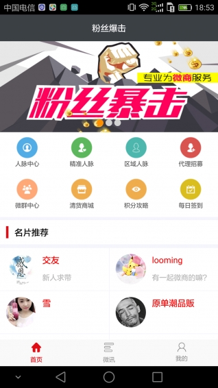 粉絲爆擊是一款幫助你快速獲得客戶(hù)資源的APP。粉絲爆擊支持一鍵導(dǎo)入客源到手機(jī)通訊錄,并自動(dòng)導(dǎo)入微信、qq、陌陌等交友軟件添加好友。同時(shí)具備幫您清貨、幫您招代理的強(qiáng)大功能,讓您的微商生意不再難做。