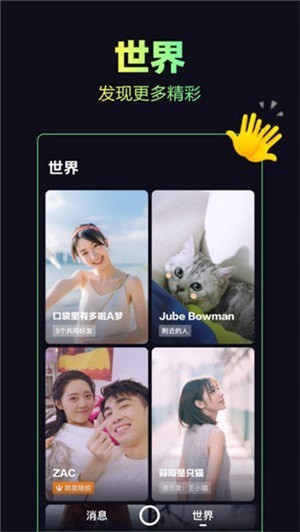 多閃還能將短視頻發(fā)布在世界中,當你的視頻動態(tài)發(fā)布之后,在“世界”中,有了你的世界,也可以在這個世界中發(fā)現(xiàn)熟悉的人,那些擱淺的關(guān)系,借用一句話:哇,你也在這里。