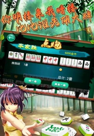 和牌方式:點(diǎn)炮:自己手中所有的牌組合成贏牌的格式,所需要的最后一張牌由他人棄之時(shí),即可和牌,只有放炮家輸分??梢砸慌诙囗?,贏分方的積分均由放炮者支付。自摸:將自己手中所有的牌組成贏牌格式,所需的最后一張牌由自己抓來,稱之為自摸,三家都要輸分。
