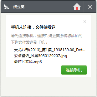當(dāng)手機(jī)沒有連接電腦,處于離線狀態(tài)時(shí),您也可以把電腦上的文件拖到對(duì)應(yīng)的懸浮窗里,當(dāng)手機(jī)下次連接電腦的時(shí)候,就會(huì)自動(dòng)傳輸?shù)绞謾C(jī)里了。
