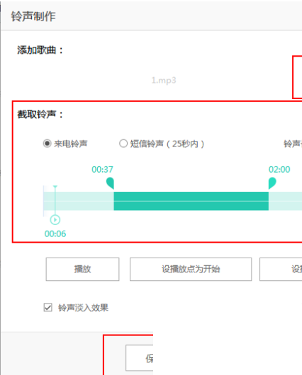 3、之后通過拖動(dòng)進(jìn)度條上的兩個(gè)按鈕來設(shè)置鈴聲的起點(diǎn)以及終點(diǎn),調(diào)整完畢后點(diǎn)擊“保存到本地”就可以了;