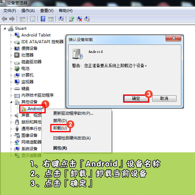 >Windows Vista/7/8 系統(tǒng)「設(shè)備管理器」開啟方法:「控制面板」-「系統(tǒng)和安全」-「系統(tǒng)」-「設(shè)備管理器」。中找到「其他設(shè)備」,點(diǎn)擊該項(xiàng)目后會(huì)出現(xiàn)「Android」或其他設(shè)備,右鍵單擊驅(qū)動(dòng)并在彈出菜單中選擇「卸載」
