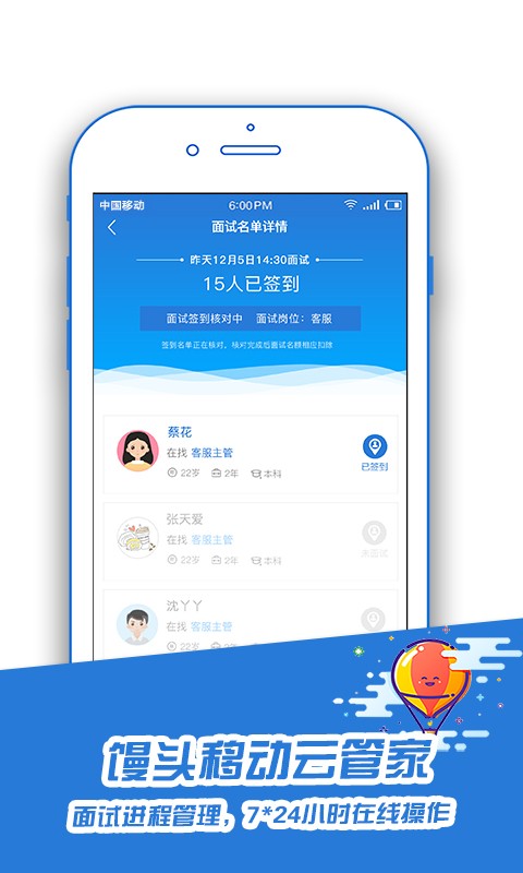 「饅頭移動(dòng)云管家」招聘面試進(jìn)程移動(dòng)管理,7*24小時(shí)隨時(shí)在線操作