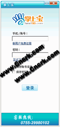 安裝完畢,雙擊桌面快捷圖標(biāo)即可通過輸入您的賬號登入掌上寶軟件版。如果您還沒有注冊的話,請先點(diǎn)擊界面上的免費(fèi)注冊。