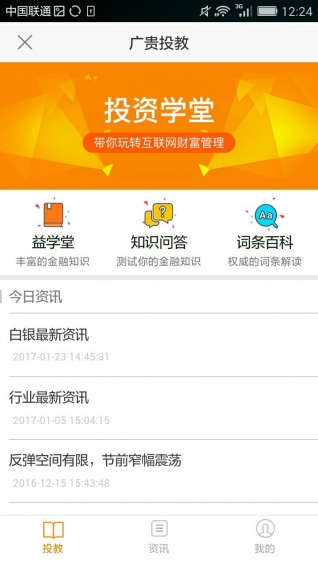 廣貴投教是廣東省貴金屬交易中心推出的兼具實(shí)踐性和創(chuàng)新性的投資教育平臺(tái)。廣貴投提供豐富的投資資訊和學(xué)習(xí)素材,寓教于樂(lè),讓投資者隨時(shí)隨地進(jìn)行在線培訓(xùn)和低風(fēng)險(xiǎn)的真實(shí)環(huán)境演練,學(xué)習(xí)貴金屬投資的基礎(chǔ)知識(shí)、風(fēng)險(xiǎn)控制和操作技巧等。