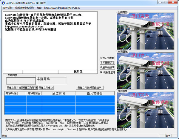 SupPlate集視頻檢測(cè)卡口,闖紅燈電子警察,逆行檢測(cè)為一體,抓拍率全天候約98%,有效率大于95%??珊芎米R(shí)別高清照片,對(duì)于圖像質(zhì)量差的高清圖片,可較好識(shí)別。帶視頻跟蹤車(chē)輛功能,可用于十字路口和路段上卡口違法抓拍.可檢測(cè)闖紅燈,壓實(shí)線,壓雙黃,變道行駛,禁左、直、右轉(zhuǎn),逆行,違法停車(chē)。【軟件功能】