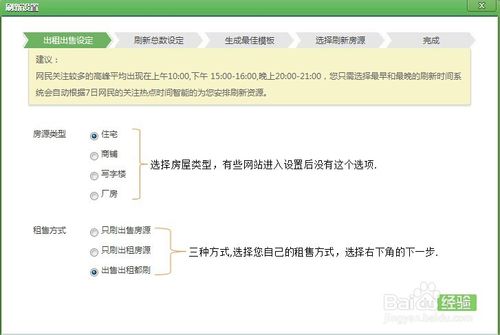 進(jìn)入設(shè)置后選擇房屋類型以及租售方式后點(diǎn)擊下一步.