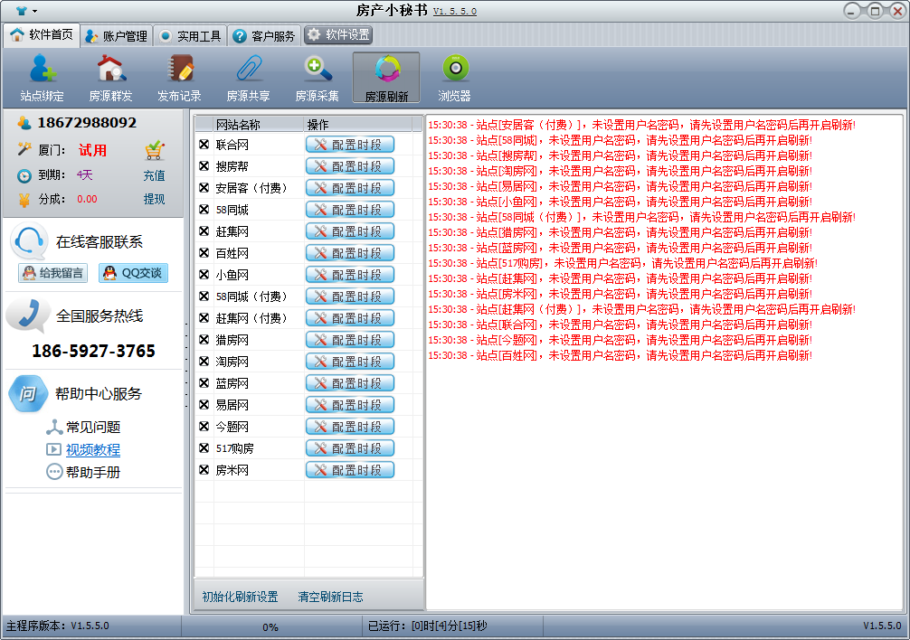 2:一鍵群發(fā),別人花一個(gè)小時(shí)做的事情你一分鐘搞定,單套多套房源多網(wǎng)一鍵發(fā)布,瞬間解決房源發(fā)布任務(wù)。若您的網(wǎng)站房源庫(kù)滿的情況下我們的程序會(huì)自動(dòng)幫你下架最早發(fā)布的房源,使用小秘書軟件發(fā)布搜房幫安居客的房源直接顯示多圖效果。3:自動(dòng)刷新,只需讓小秘書保持后臺(tái)登陸狀態(tài),全天候幫您自動(dòng)刷新。58免費(fèi)付費(fèi).聯(lián)合網(wǎng)賬號(hào)均可無(wú)限刷新,搜房幫.58.趕集均可做到個(gè)性化設(shè)置刷新達(dá)到刷新集攻的效果。