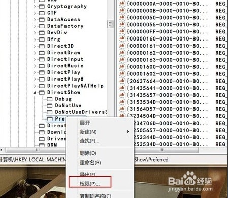 并定位到子鍵HKEY_LOCAL_MACHINE/SOFTWARE/Microsoft/DirectShow/Preferred