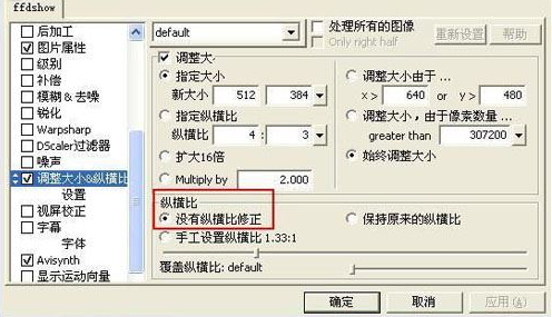 關(guān)于畫(huà)面縮放請(qǐng)參見(jiàn)我中高級(jí)教程里的相關(guān)部分,ffdshow的這個(gè)慮鏡解決了如果用壓縮軟件來(lái)縮小畫(huà)面會(huì)極度增加壓縮時(shí)間的不利因素